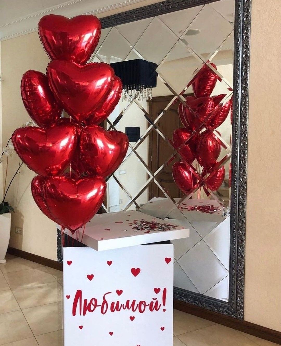 Иногда сюрприз может скрываться в коробке, чтобы произвести еще больший эффект неожиданности. Например, наполнить коробку гелиевыми шарами. При открытии крышки шары красиво взлетают в воздух.