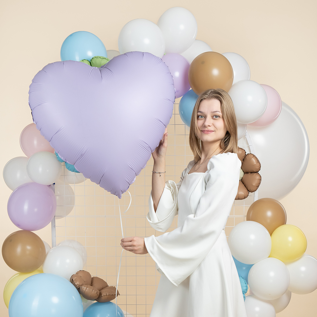 Нежные сатиновые сердца от Falali представлены в цветах пыльная роза, сиреневый и кремовый. Размер сердец составляет 76 см.