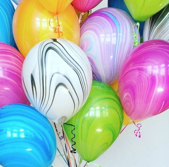 Агатовые шары – это латексные шары, которые имеют мраморный узор. Каждый из этих узоров уникален и состоит из нескольких оттенков. Они напоминают природный камень агат. Такие шары смотрятся эффектно и премиально.