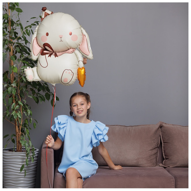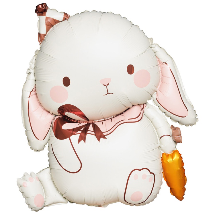 Объемный фольгированный шар высотой 89 см в форме милого зайчика, держащего морковку. При надувании рекомендуется использовать гелий. Имеет встроенный клапан -что упрощает надувание. Изготовлен из качественных материалов (полимерная фольгированная пленка). Поставляется в красочной упаковке с цветным изображением шара, что позволяет выставлять товар в сдутом виде. Размер шара в ненадутом виде 71x89 см. Идеи использования: подарок ребенку – добрый и трогательный, пасхальный декор – символ весны и обновления, фотосессия. Внимание! Реальный цвет товара может незначительно отличаться от представленного на фотографии в зависимости от настроек вашего монитора.