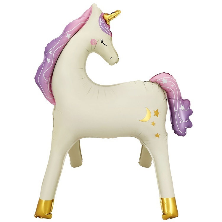 Волшебный единорог - большая ходячая фигура высотой 97 см, станет эффектным подарком или отличным фоном для фотосессии.Данный шар-ходячку можно надуть ВОЗДУХОМ. Конструкция шара и грузики, прикрепленные к нижней части фигуры, обеспечивают ей устойчивое положение. Фигура выполнена из миларовой пленки, что позволяет ей не сдуваться более недели. В комплекте к шару добавлена схема по сборке и грузики.