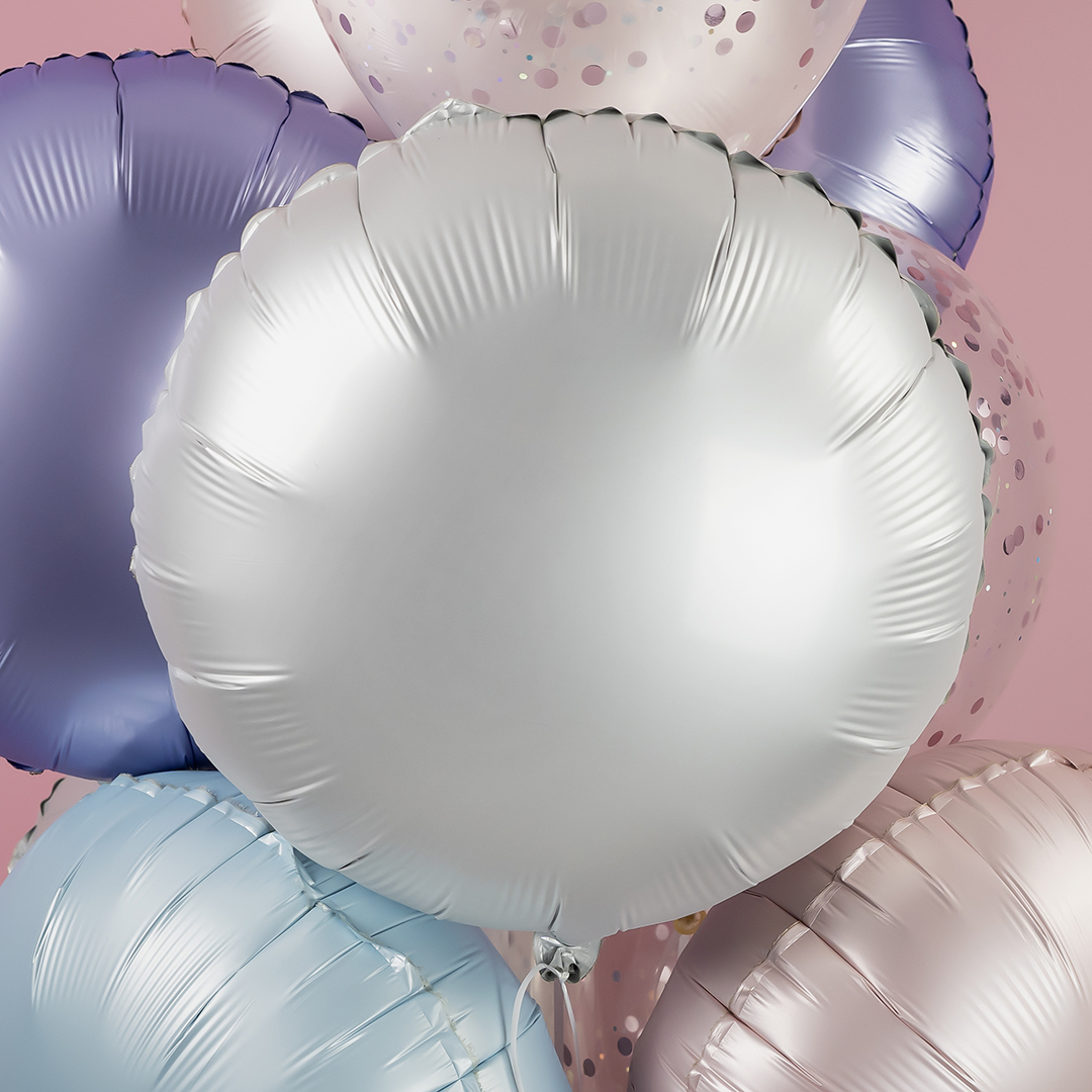 • 18 дюймовый одноцветный шар. Приспособлен под гелий. Фольгированные воздушные шары изготавливаются из тонкой миларовой пленки, позволяющей шару не сдуваться в течении нескольких дней. Фольгированные воздушные шары надувают через клапан. Поэтому плотно надутый шар завязывать не требуется - обратный клапан хорошо удерживает гелий внутри шара. К шару привязывают ленту только для того, чтобы шар не улетел. Сдувшийся фольгированный шар можно поддуть гелием или воздухом и он всегда будет иметь товарный вид.