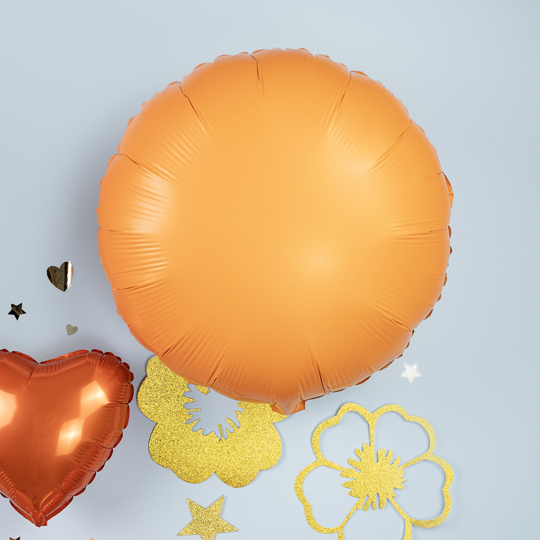 • 18 дюймовый одноцветный шар. Приспособлен под гелий. Фольгированные воздушные шары изготавливаются из тонкой миларовой пленки, позволяющей шару не сдуваться в течении нескольких дней. Фольгированные воздушные шары надувают через клапан. Поэтому плотно надутый шар завязывать не требуется - обратный клапан хорошо удерживает гелий внутри шара. К шару привязывают ленту только для того, чтобы шар не улетел. Сдувшийся фольгированный шар можно поддуть гелием или воздухом и он всегда будет иметь товарный вид.