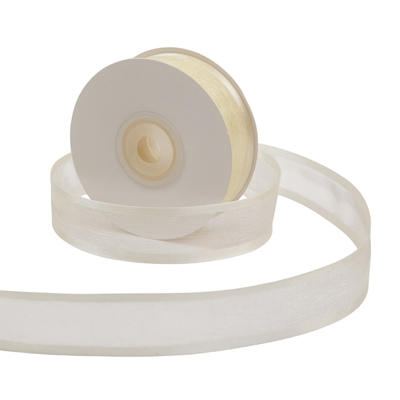 Лента атлас и органза белый песок 2,5 см К
