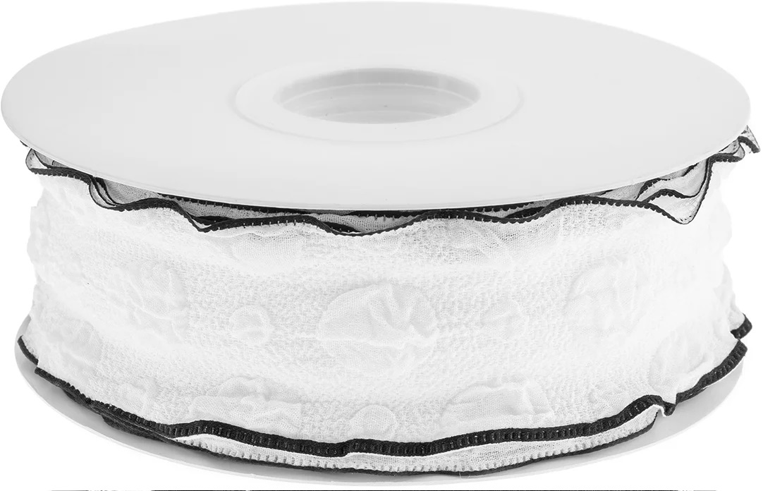 Лента тканевая Элегантная волна, Белый/Черный 4 см К