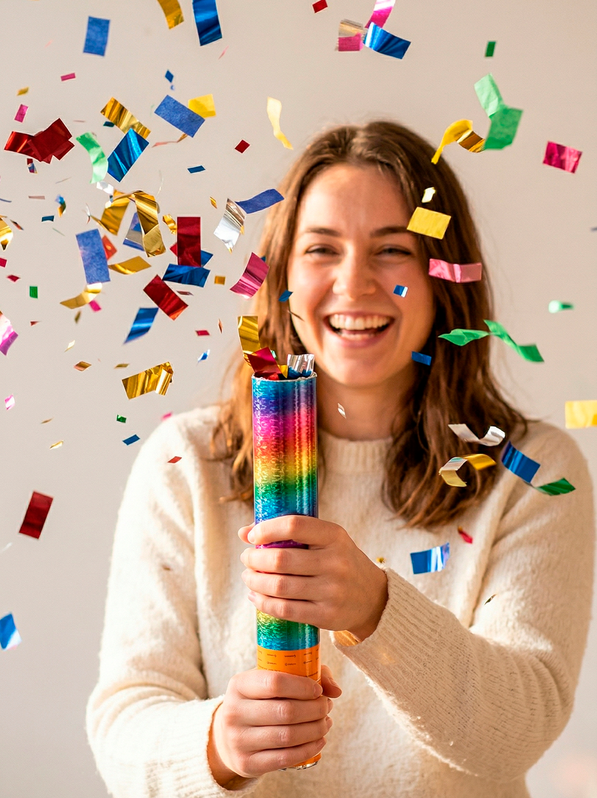 Хлопушка приводится в действие сжатым воздухом. Баллончик со сжатым воздухом – металлический, что гарантирует целостность приводного механизма до момента запуска. Возможно использование в помещении, если позволяет площадь.