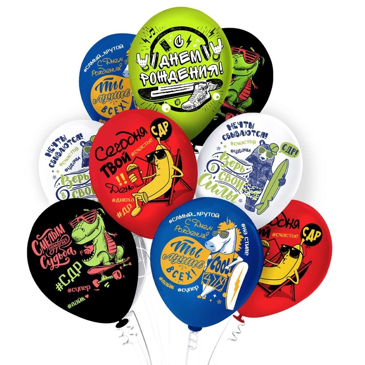 Шар 12" Ассорти С днем рождения, твой день БК 10 шт