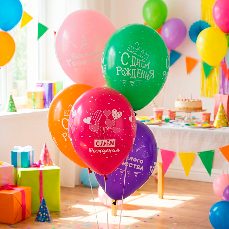 Шар 12" Ассорти С днем рождения, Веселые поздравления деко